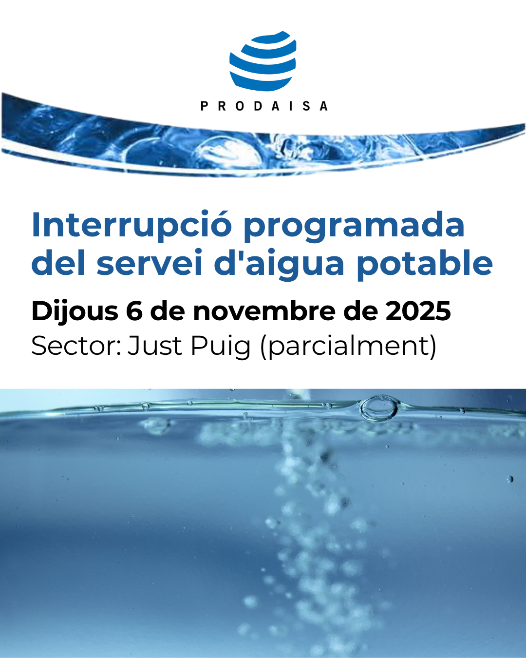 📣 AVÍS D'INTERRUPCIÓ PROGRAMADA DEL SERVEI D'AIGUA POTABLE
