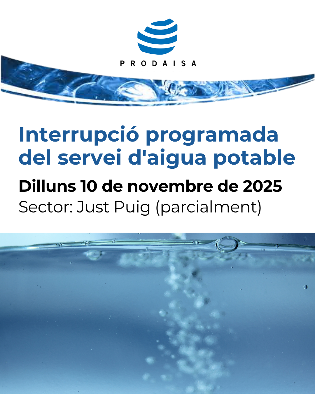 📣 AVÍS D'INTERRUPCIÓ PROGRAMADA DEL SERVEI D'AIGUA POTABLE