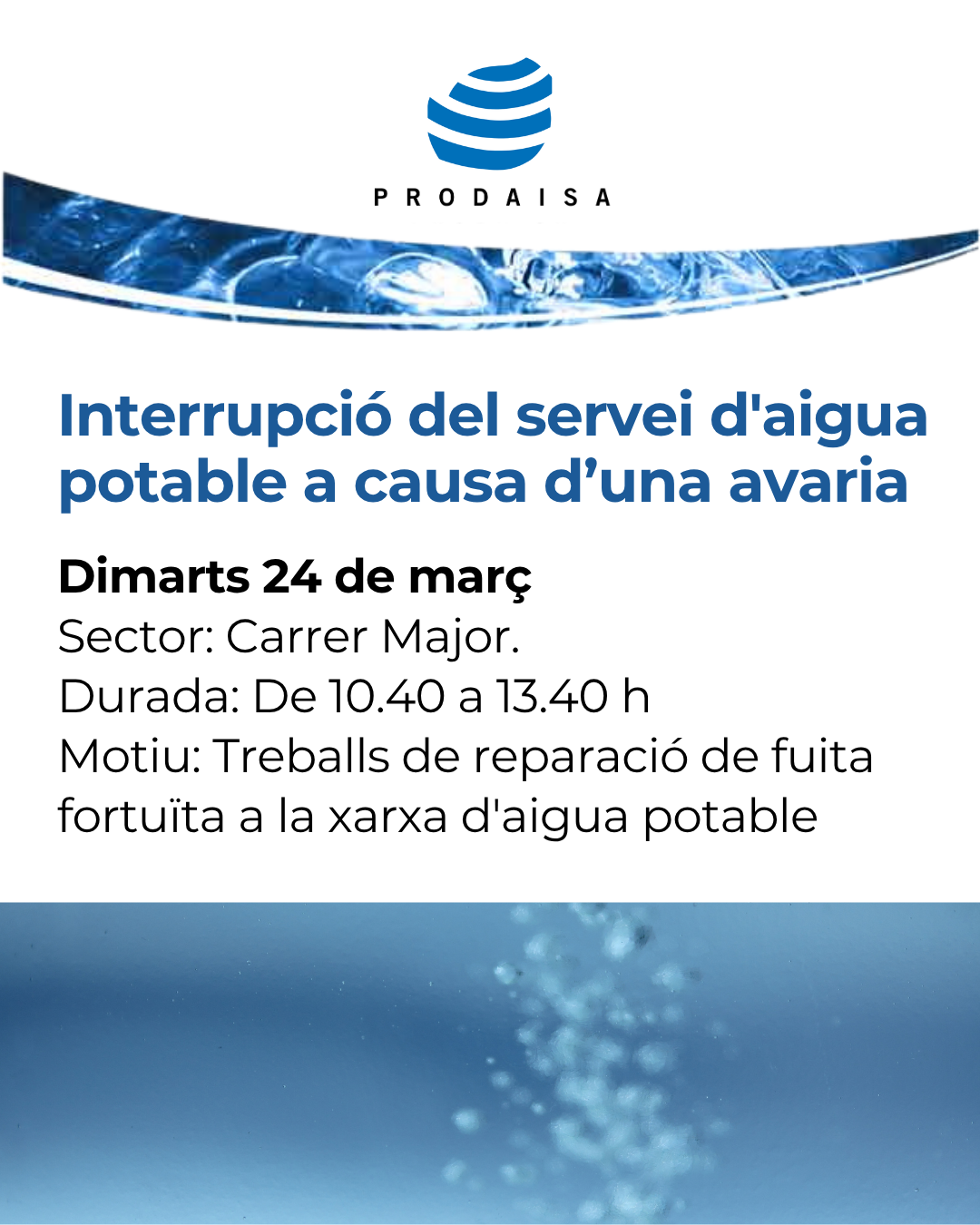 🔔 INTERRUPCIÓ DEL SERVEI D'AIGUA POTABLE A CAUSA D'UNA AVARIA 🔔