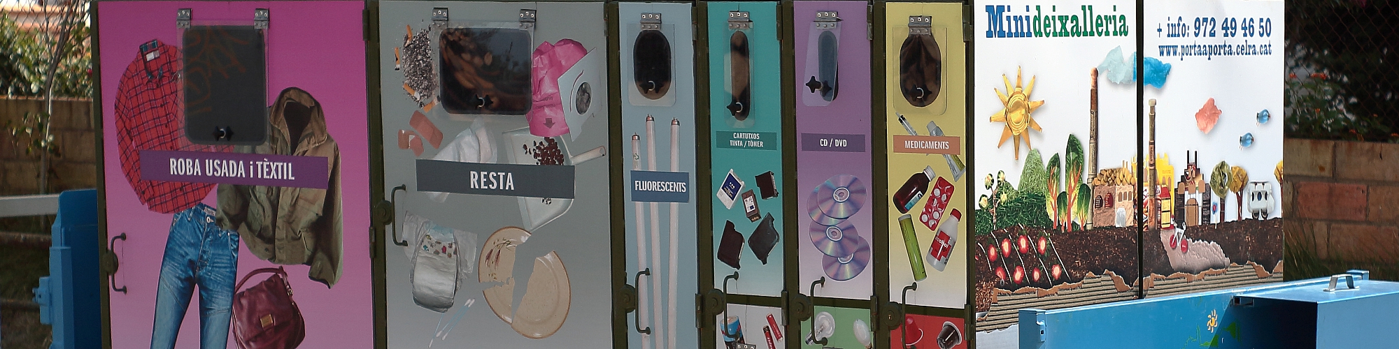 Residus reciclables: Vidre, paper-cartró, llaunes, brics, envasos de plàstic, roba, ferralla, cables elèctrics, etc.